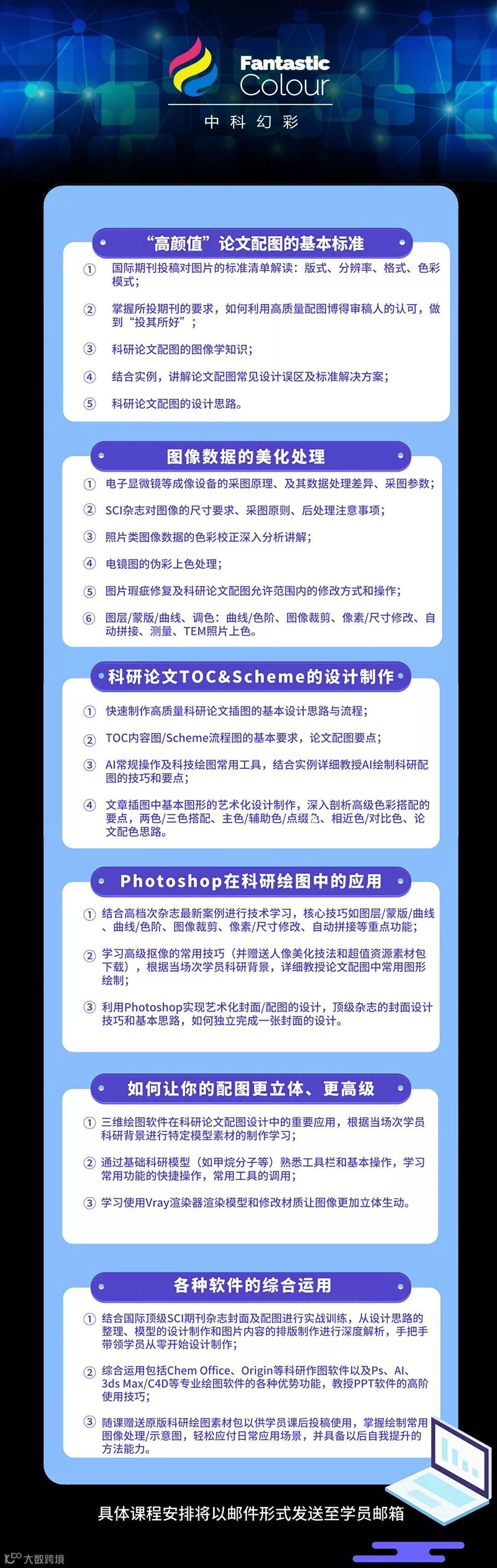 作为国内领先的专业科研绘图企业,中科幻彩拥有百位硕博组成的设计师团队,深厚的科研背景+专业的设计水准=每年为超过1000个课题组制作超过3000幅论文配图作品+开课四年内举办超过200场科研绘图培训教授超过3000名学员。