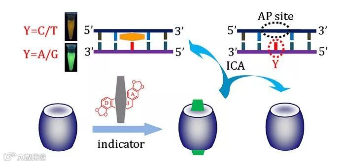 他们开发的基于超分子CB7-指示剂复合物的多色DNA识别分析方法,首次论证了ICA原理用于构建超分子多色DNA传感器。通过利用选定的指示剂,发展的多色核苷酸颠换识别以及碱基缺失位点生物标记物检测具有理想的选择性。
