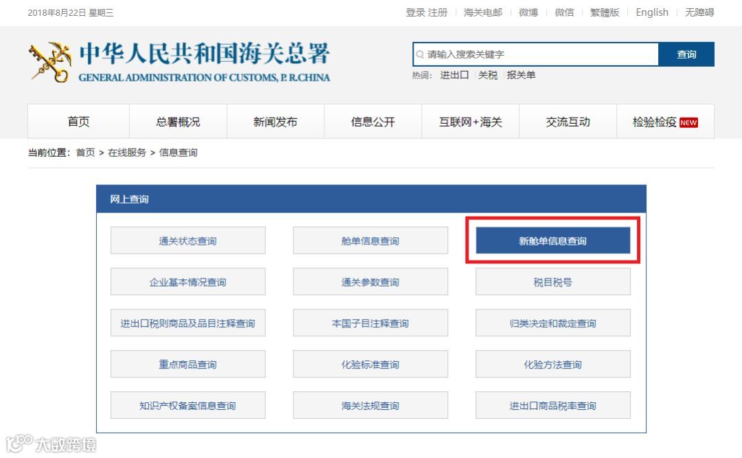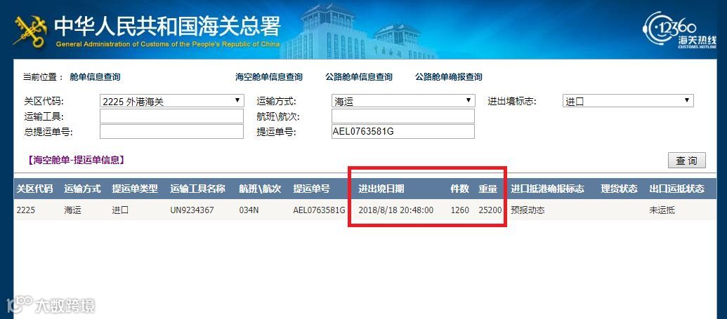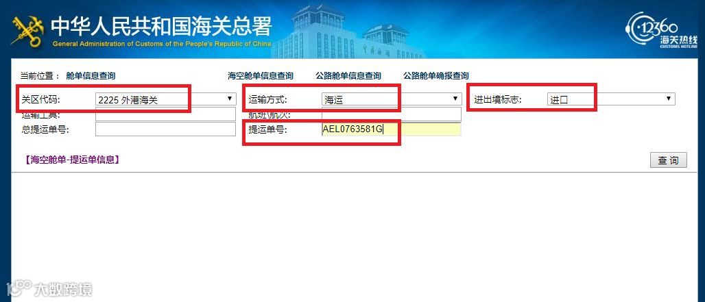 输入:舱单口岸关区代码、运输方式、进出境标志、提运单号