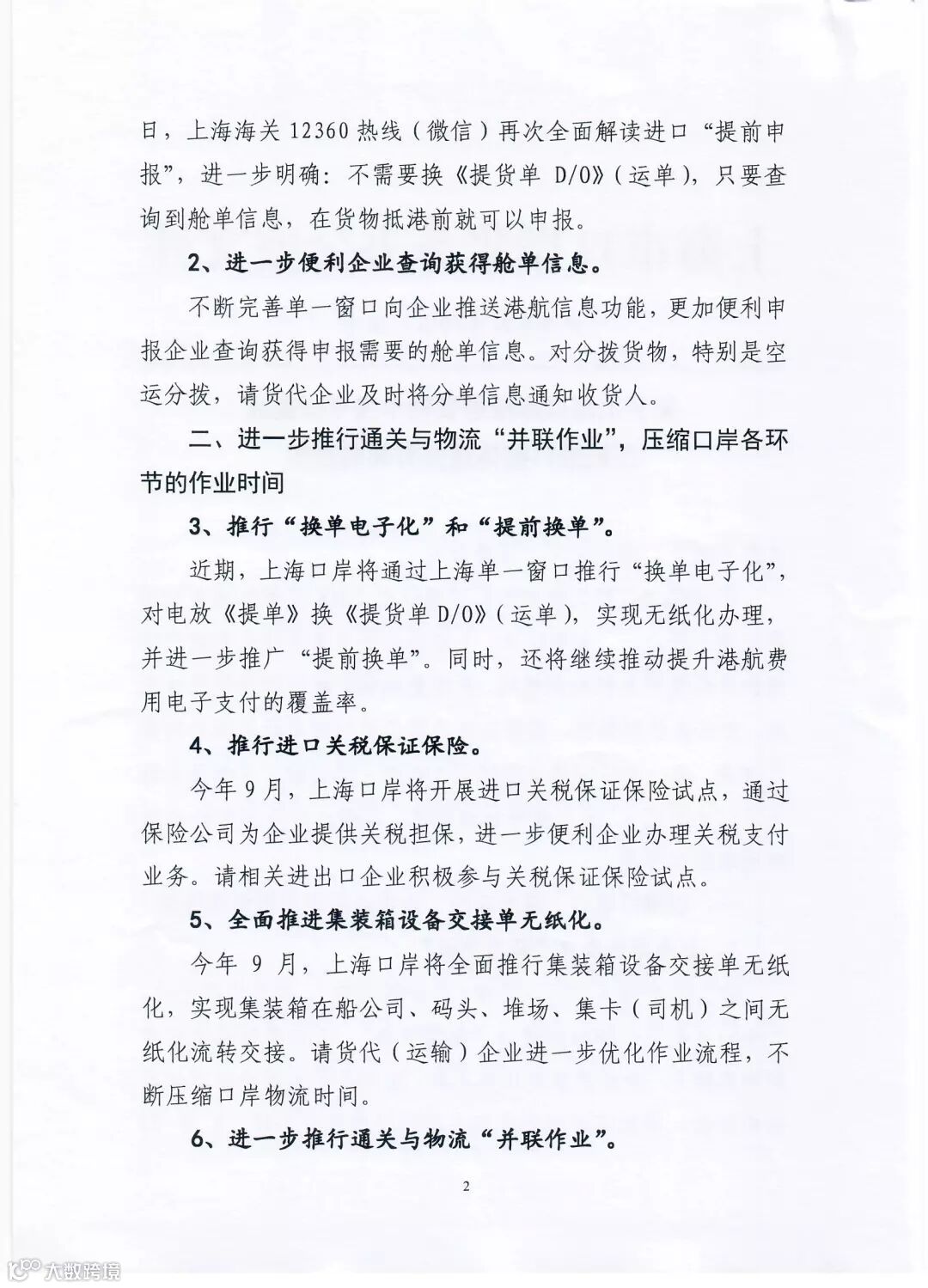 面向所有海运和空运货物(含分拨货物)、所有信用企业、所有通关类型全面推行进口“提前申报”。在舱单数据提前传输的前提下,企业提前申报报关单,海关提前办理单证审核及税费征收,货物实际到港后即办理查验或放行手续。8月23日,上海海关12360热线再次全面解读进口“提前申报”,进一步明确:不需要换《提货单D/0》(运单),只要查询到舱单信息,在货物抵港前就可以申报。(注:详见文末)