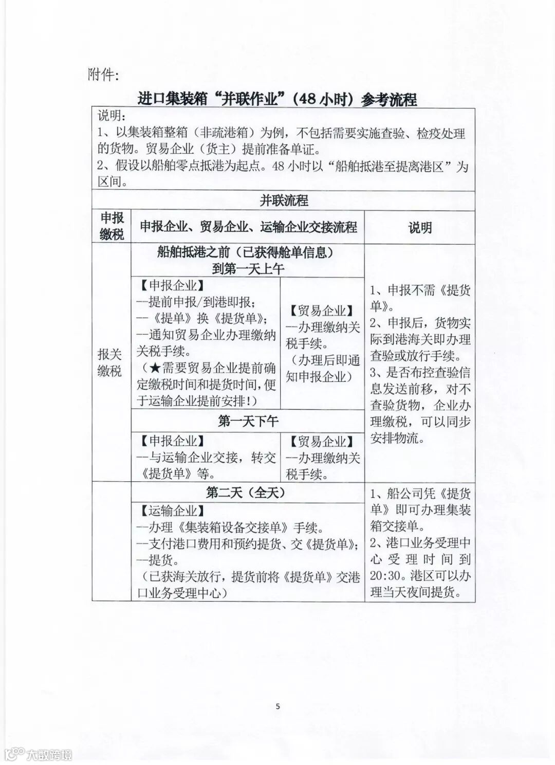 附《进口集装箱“并联作业”(48小时)参考流程》