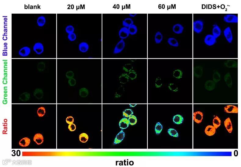 图2. 探针标记的巨噬细胞在不同条件下的激光共聚焦图像(其中DIDS为细胞膜上阴离子通道阻断剂)。