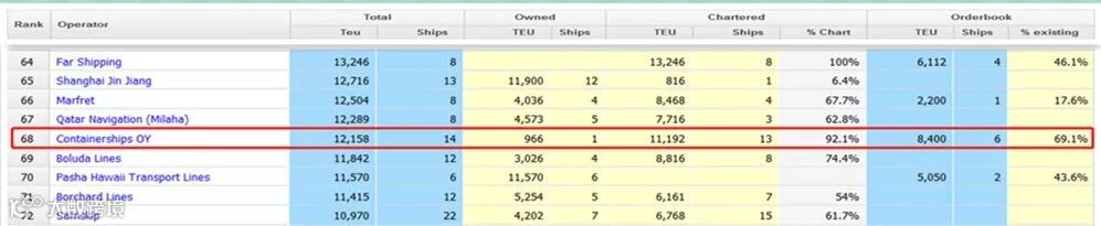 ▲Containerships在全球运力排行榜排名68