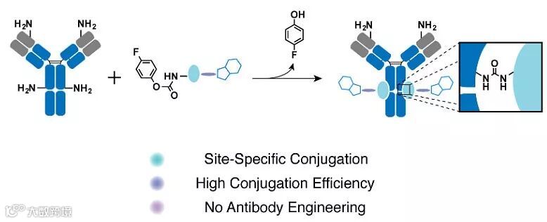 免疫球蛋白可对靶点进行特异性结合,广泛用于生物医学领域。人们最初通过小分子反应标记抗体蛋白,例如赖氨酸末端氨基的非特异性酰化反应或者用马来酰亚胺修饰色氨酸。但由于小分子反应的不可控性,这些修饰后的抗体蛋白往往对靶点的结合能力有所减弱,不适合医学应用。随着生物正交化学和蛋白质工程的发展,一些新的对抗体蛋白特异性修饰的方法由此产生,例如通过对抗体蛋白的基因修饰在抗体蛋白上插入非自然氨基酸或是功能性多肽链使其可与小分子特异性结合。然而这些方法需要对抗体蛋白进行基因修饰,效率较为低下。抗体蛋白修饰的另一个方向是通过光催化诱导抗体与功能性多肽偶联,但是由于紫外激发会导致蛋白质损伤,并且光催化难以控制,该方向目前也没有很大的进展。