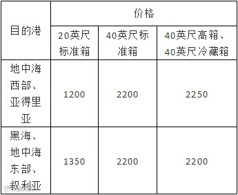 中国大陆、中国台湾至西非:500美元/20英尺集装箱、1000美元/40英尺集装箱。