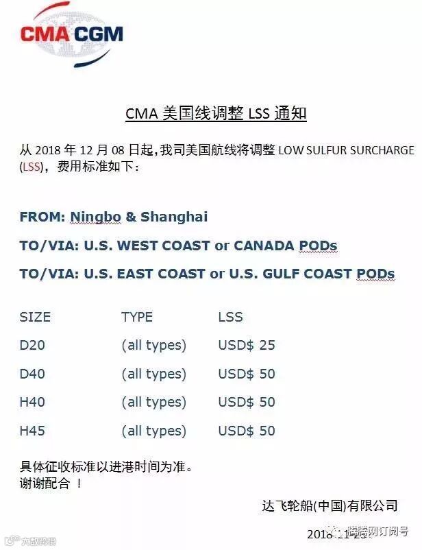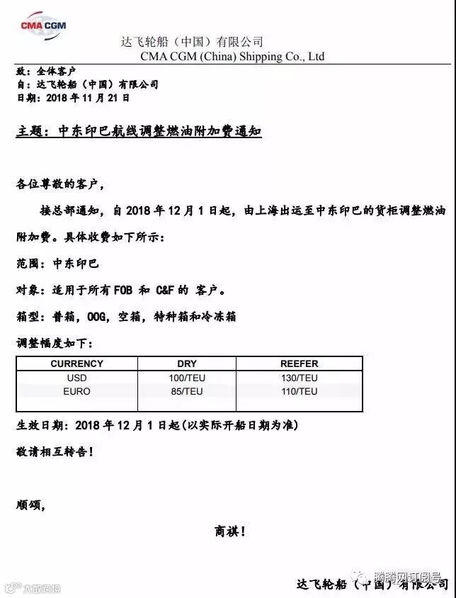 CMA达飞GRI、FAK、GRR征收调整