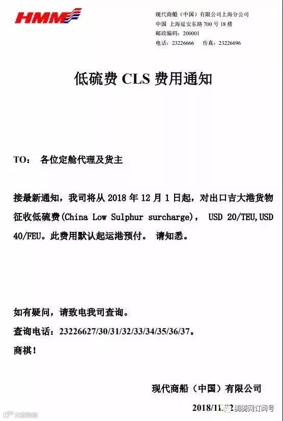 HMM低硫费CLS通知-吉大港