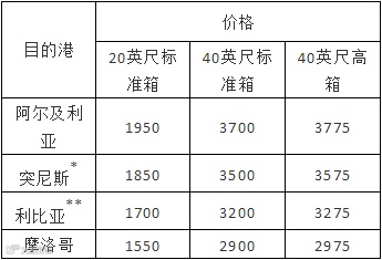 **如挂靠班加西港,每TEU增加75美元。