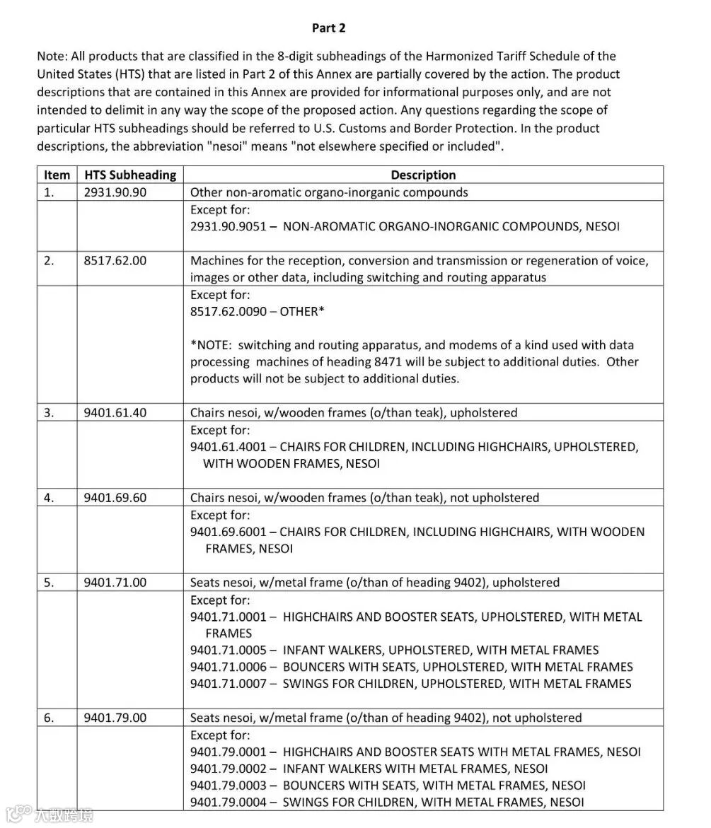 进行产品自查的企业需注意清单中的海关编码皆为美国海关编码,与中国出口方的报关编码并非完全一致,请查看前6位,然后根据产品描述确认产品是否被列入了清单,必要时与美国客人做再次确认。