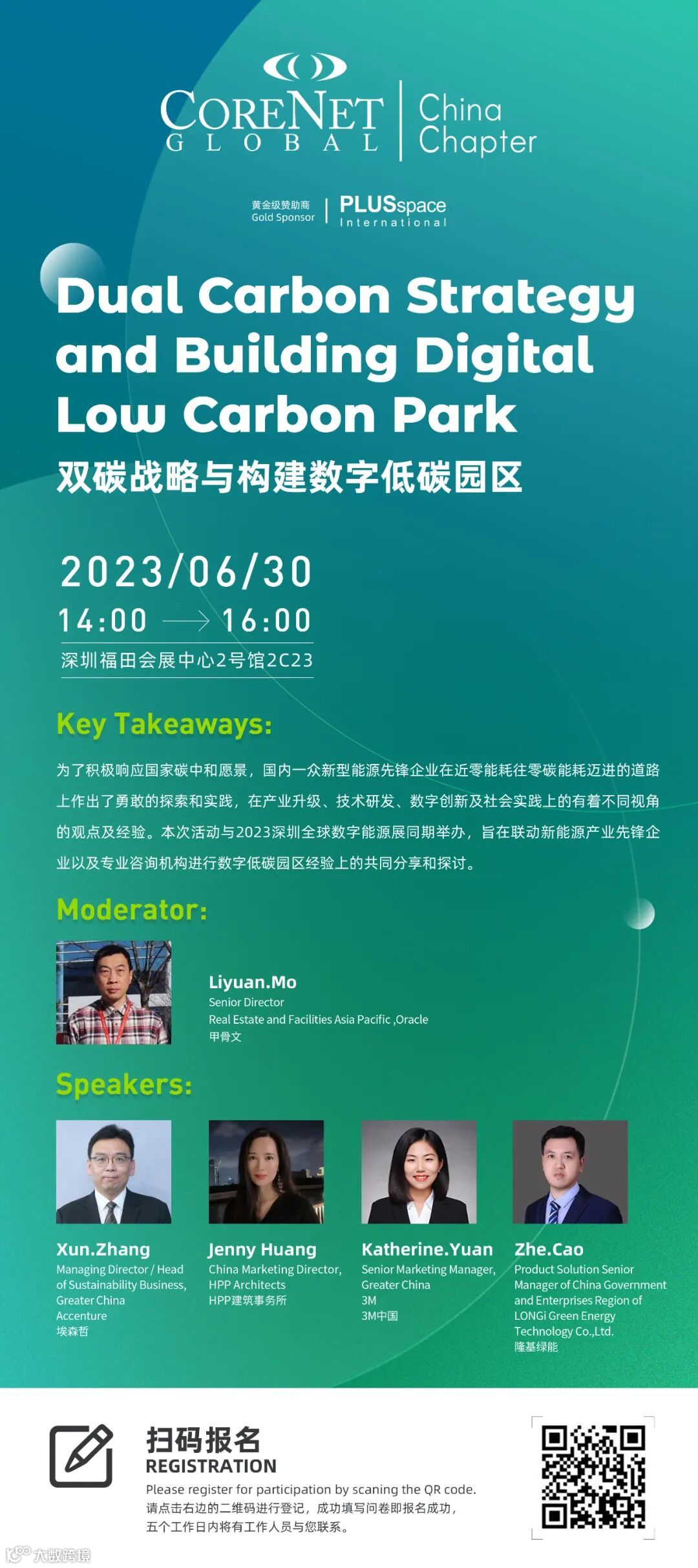 Cityinno意创带着全新形象及新型能源解决方案亮相,6月30日我们更有幸同期举行Corenet Global低碳主题沙龙研讨会,邀请到甲骨文Oracle房产及设施部门北亚区高级总监莫力原先生、埃森哲大中华区董事总经理/可持续发展业务主管张逊先生、德国HPP建筑事务所市场总监黄如欣女士、3M大中华区高级市场经理袁源女士及隆基绿能中国政企地区部解决方案总监曹哲先生进行主题分享。