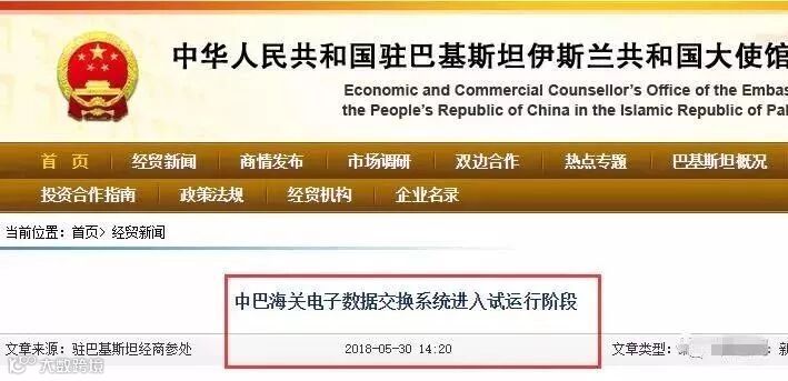 巴基斯坦《商业记录报》5月30日报道,巴基斯坦海关已经开启中巴海关电子数据交换系统,系统目前处于试运行阶段。海关电子数据互换系统将覆盖中巴自贸协定项下的进出口货物的原产地证明和出口报关单等电子数据。