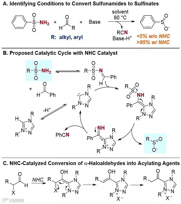 图4. NHC催化N-S键的还原断裂。图片来源:J. Am. Chem. Soc.