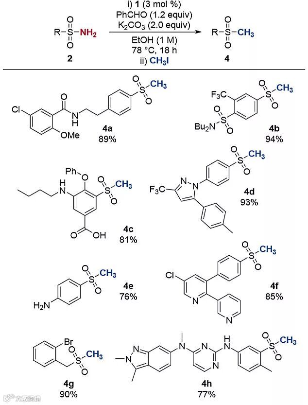 图6. 磺酰胺转化为甲基砜。图片来源:J. Am. Chem. Soc.
