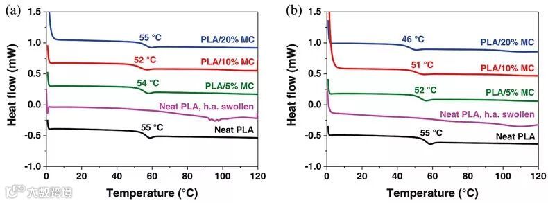 PLA-MC体系拉伸前后Tg测试。图片来源于:Adv. Mater.
