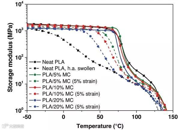 PLA-MC体系DMA测试表征。图片来源于:Adv. Mater.
