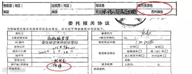 下图中,《委托报关协议》和《出口货物报关单》上的货源地不一样!