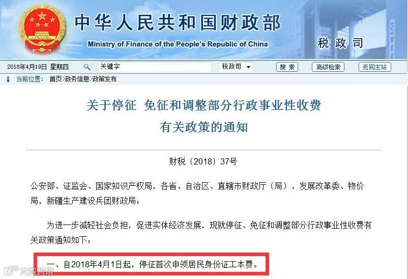 首次申领身份证不用交工本费了!