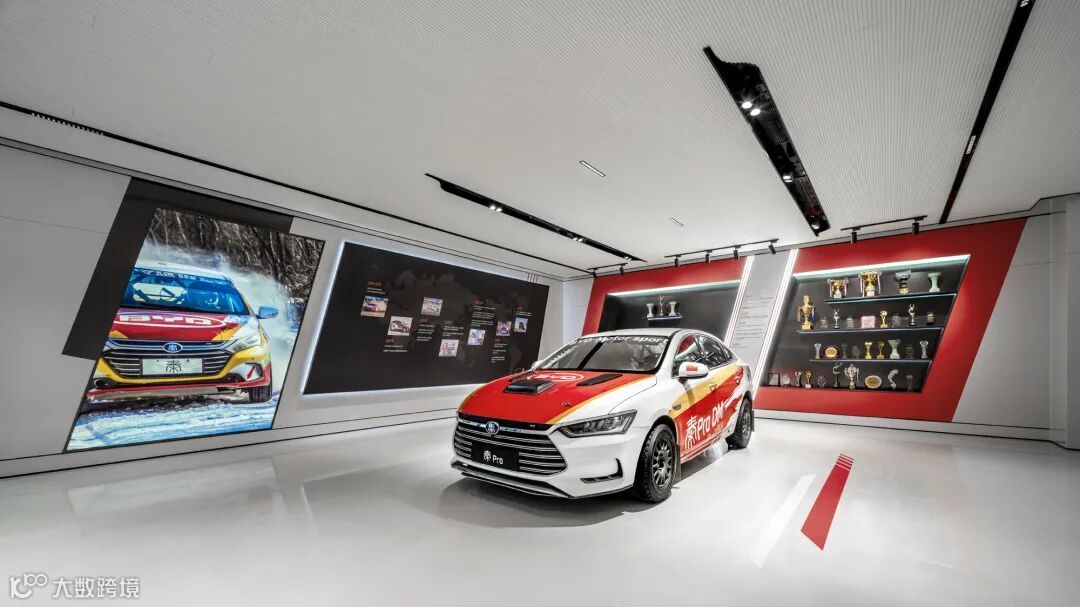 二层展厅深度解码比亚迪技术内核,我们通过叙事手法优化动线、融入赛事视觉系统增强空间的连贯性和可读性。