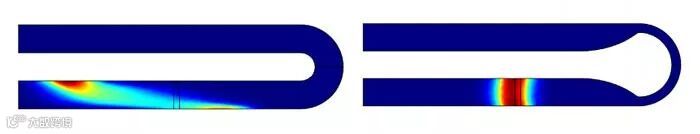 由于微流控器件尺度较小,使用外加电场的方式操控流体运动是目前主要的方法。其中电渗(Electroosmosis)是一种常用方法,外加电场施加在一个带电荷的表面(玻璃毛细管的内壁)或者多孔的固体介质的两端,驱动通道内的溶液以某一固定的速度流动。流动速度与壁表面电位和外加电场强度有关。COMSOL Multiphysics 内置了电渗流边界条件,可以非常方便的模拟电渗流问题。以下案例分析了一个U型电渗流器件中的溶质输运和扩散,使用模拟计算进行流体通道拐弯处几何优化,可以将弯曲引起的溶质弥散降至最低程度。