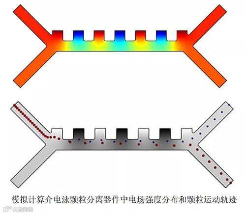 介电泳(Dielectrophoresis)是在外加电场作用下,由于悬浮颗粒与溶剂之间介电常数差异造成的作用力。介电泳作用力会将介电常数小于溶剂的颗粒拉往电场强度较低的地方。另外介电泳力的大小还与颗粒半径有关,所以介电泳常被用来分离大小不同的颗粒或细胞。设计介电泳器件,需要控制电场分布、流场,还要计算不同颗粒在器件中的运动轨迹。这是涉及多个物理过程的复杂问题,但通过COMSOL Multiphysics 建模计算能完全模拟介电泳器件,帮助我们设计优化高效的介电泳器件。