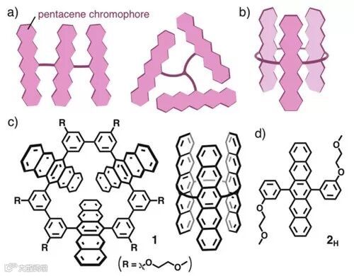 图1. 非环状和环状并五苯三聚体。图片来源:Angew. Chem. Int. Ed.