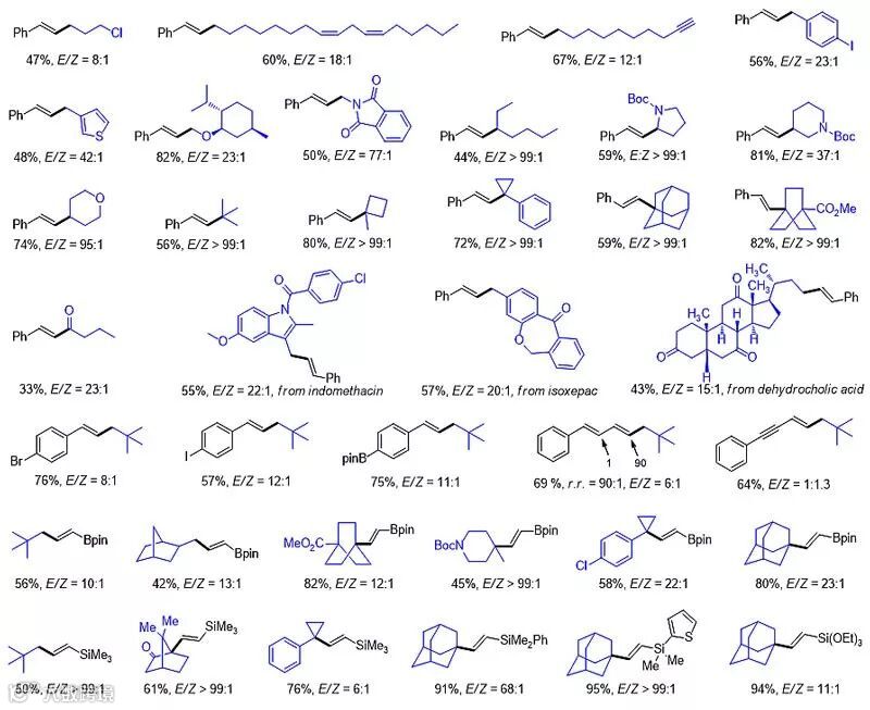 图3. 部分脱羧Heck偶联产物。图片来源:J. Am. Chem. Soc.