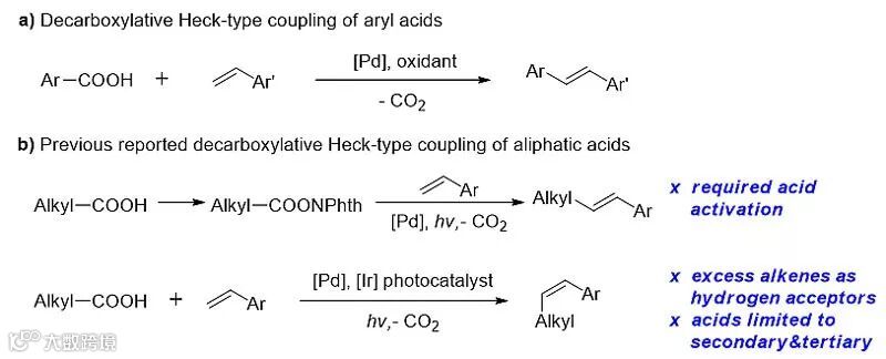 图1. 脱羧Heck偶联反应。图片来源:J. Am. Chem. Soc.