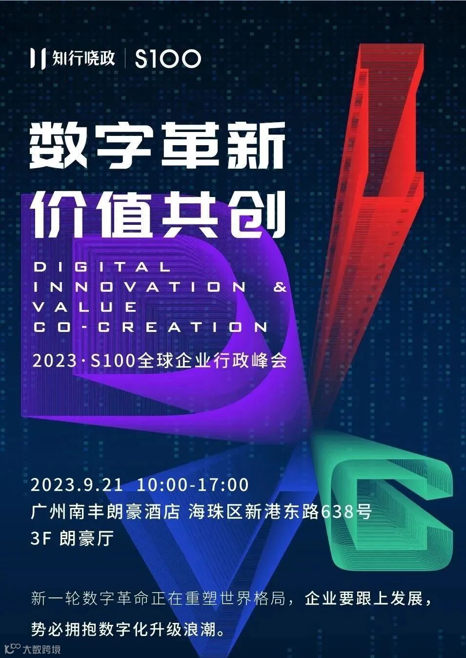 2023年9月21日,由知行晓政主办的S100全球企业行政峰会将在广州举行,邀请来自华为、阿里巴巴、腾讯、美团等知名企业的高管分享数字化浪潮下企业服务未来趋势。