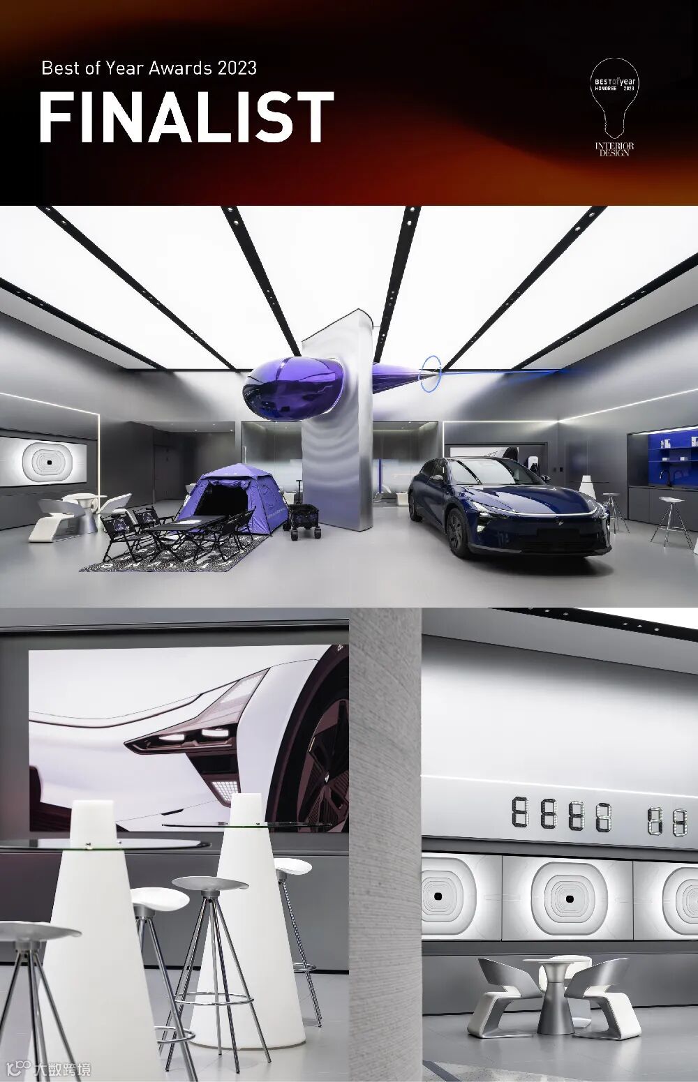 意创凭借「极越 x三体首家联名体验店」以及「完美日记总部品牌体验中心」两个项目在品牌体验策略和空间美学布局上的大胆突破,分别入围「vehicle showroom」及「beauty retail」两个类别的最终评选。