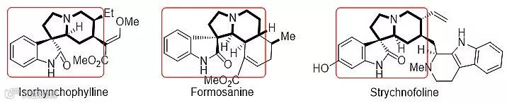 图一. 天然产物分子中存在的四环氧化吲哚结构