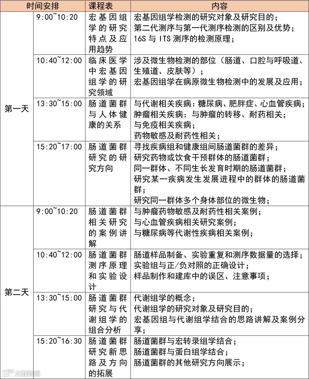 通过整整两天的学习,了解肠道菌群与临床疾病相关研究的实验设计思路及具体注意事项,可以更加有效的进行肠道菌群相关课题的研究。了解最新相关研究成果,强调肠道菌群与临床疾病的作用关系;肠道菌群相关课题的研究方向及具体操作步骤。