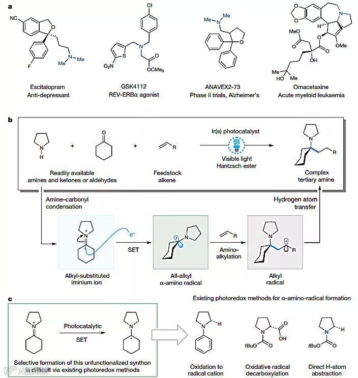 图1. 多组分光催化反应合成叔烷基胺。图片来源:Nature