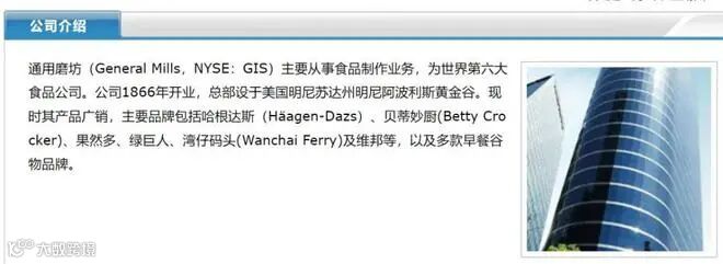 作为世界第六大食品公司,通用磨坊坐拥哈根达斯、湾仔码头、果然多、绿巨人、贝蒂妙厨及维邦等100多个知名品牌,且多个品牌在细分市场位居冠亚军宝座,涉及领域包括谷物早餐、冷冻蔬菜、高档冰淇淋、休闲食品、手工水饺、有机食品等。