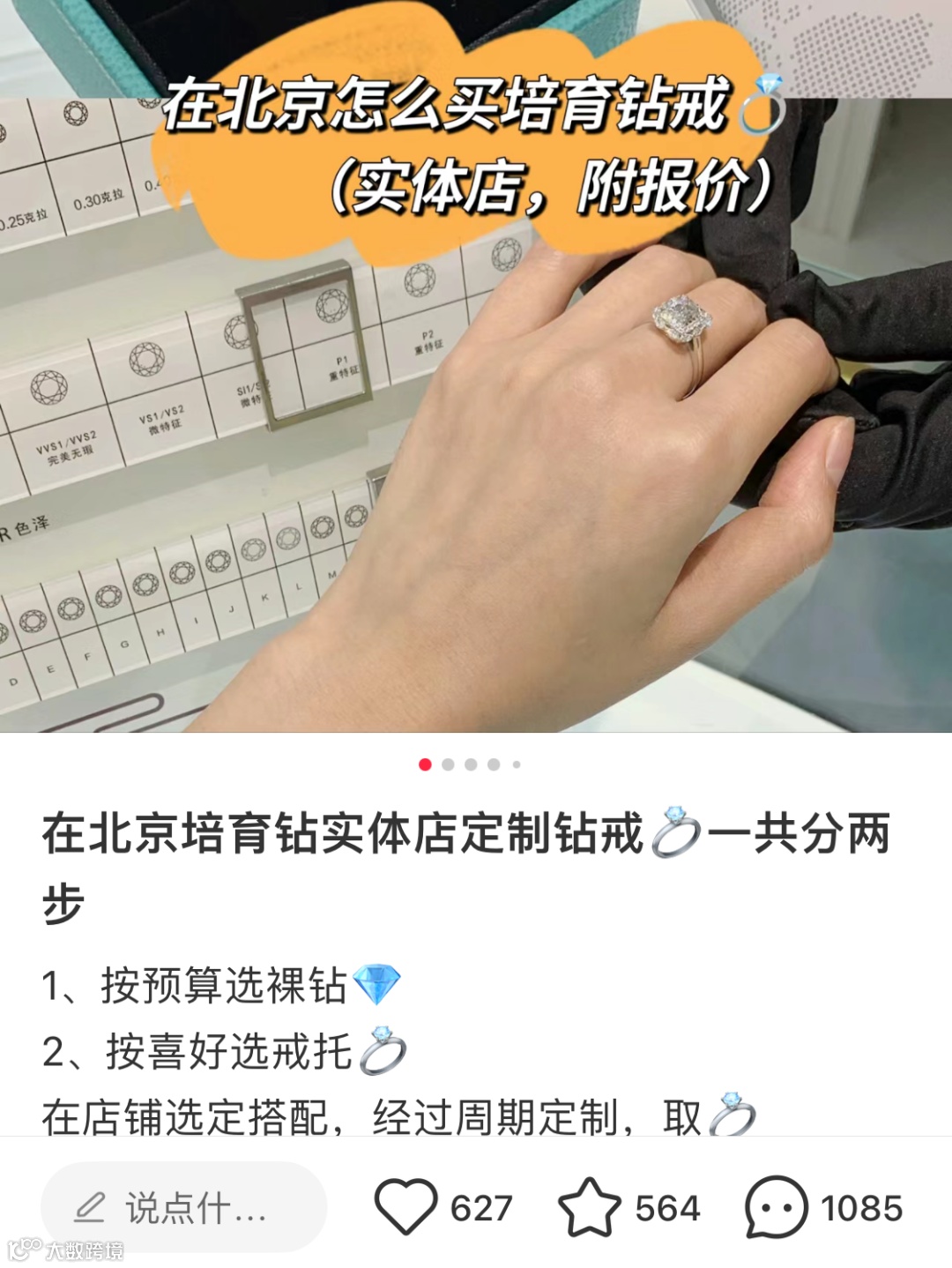 而小编在社交媒体上看到的一篇关于在北京怎么买培育钻戒的笔记,竟然有1085条礼貌询价的留言。笔记中明确标注了钻戒的大致价格范围,相比天然钻石这个价格当然是真香。