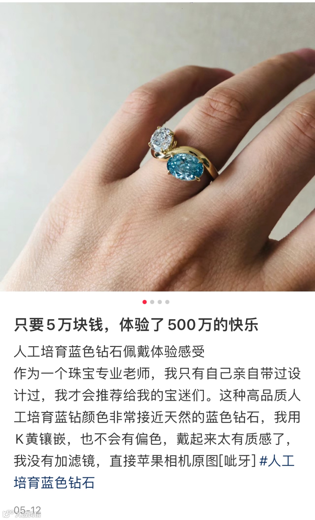 博主“Frida snow弗里雪诺”关于培育钻石的笔记特写照片也是引来大量礼貌问价