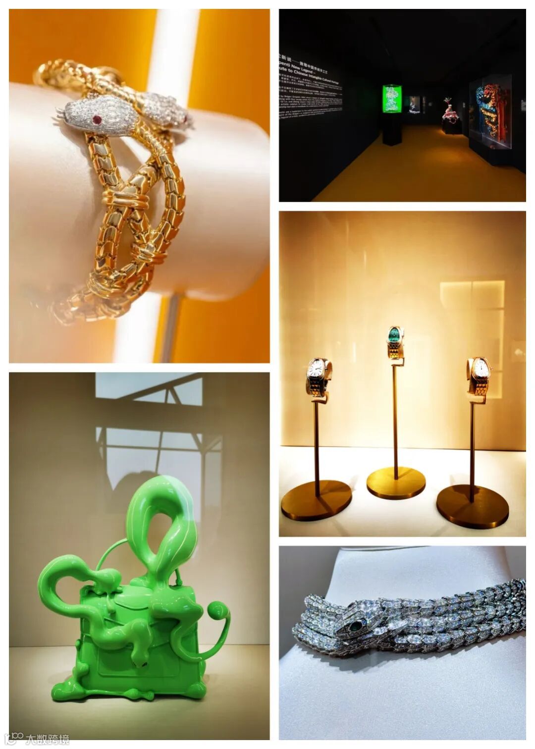本次珍藏艺术展除了展示宝格丽古董典藏腕表、珠宝作品、高级珠宝作品、与安藤忠雄合作的“四季颂歌”系列腕表之外,还集结数十位中外艺术家以现代艺术形式分为【溯图腾传说】、【循蜿蜒匠艺】、【灵蛇回音】、【灵蛇新说】、【灵蛇意象】五大篇章,溯源品牌图腾,探讨灵蛇意象,致敬中国传统手工艺。