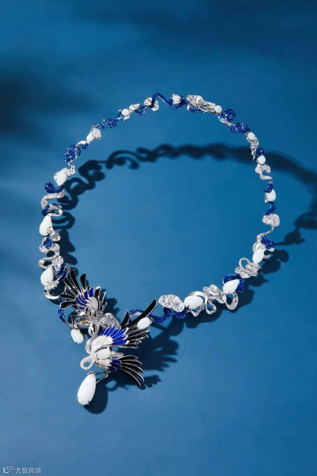 总重约58.47克拉天然海螺珠,钻石及彩色宝石「仙鹤」项链/胸针 两用款