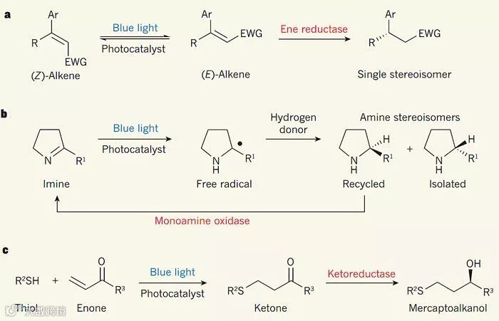 图2. 结合光催化和酶催化实现不对称合成。图片来源:Nature