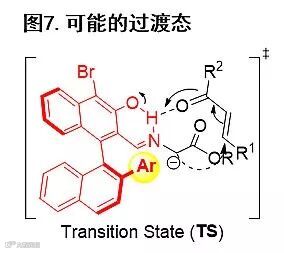 为了更加深入研究反应的历程,作者还与第三军医大学的欧阳勤教授合作,通过密度泛函理论(DFT)计算研究了反应可能的过渡态和反应立体选择性的控制及质子转移过程。计算结果表明,手性醛催化剂作为双功能催化剂,3位的酚羟基与相邻醛基之间的氢键对于降低亚胺形成和亲核加成过程中质子转移的能垒起着非常重要的作用(图7)。