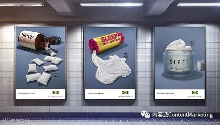 他们将宜家的枕头、被子、床垫、床单等商品设计成了睡前用品中的一部分,比如由床垫组成的面霜、由枕头组成的褪黑素药片等等,呼吁人们睡个好觉。