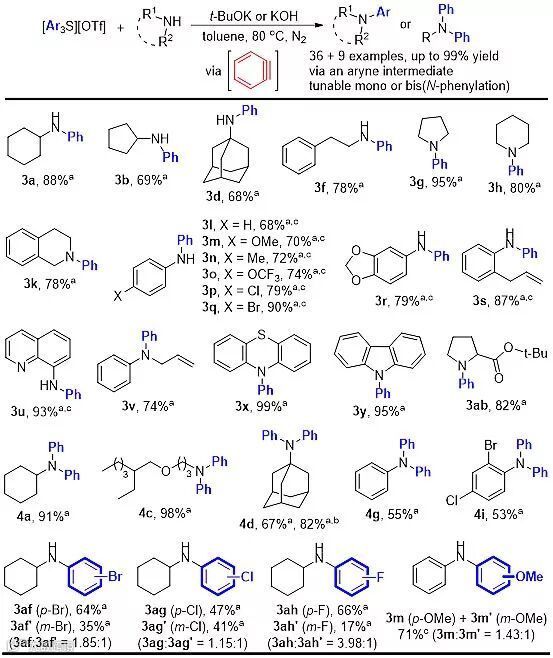 图3. 无过渡金属参与三芳基鋶盐与胺类化合物的N-芳基化反应