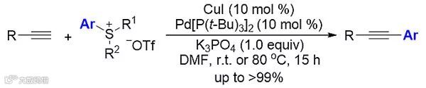 图2. 钯/铜共催化芳基锍盐对末端炔烃的Sonogashira偶联