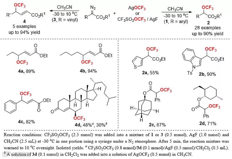 图5. AgOCF3对α-重氮羰基化合物的三氟甲氧基化反应