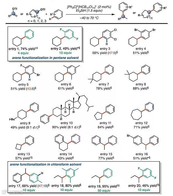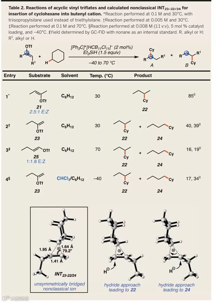 虽然在上世纪,在理解烃类化学和在合成反应中使用烃类方面取得了巨大的进展,然而对活性最小的烃类底物(即饱和烷烃和环烷烃)进行有用的化学转化仍具有相当大的挑战性。由于碳氢键较强和前线分子轨道的反应活性缺失,这些化合物具有相对较强的惰性。为了开发可利用饱和烃进行合成的新方法,化学家必须设计出能够攻击这些底物的C-C或C-H强键的活性试剂。而Nelson与Houk教授团队的此项工作在乙烯基阳离子的产生及其化学转化的研究中实现了这一目标。他们通过硅正离子(silylium)-弱配位阴离子(WCA)催化产生乙烯基阳离子,这种活性中间体可经历温和的分子间碳-碳键形成反应,包括非活化的sp3 C-H键的插入和芳烃的还原Friedel-Crafts反应。这种新型C-H键官能化反应很有潜力用于将难处理的烷烃高效地转化为有用的化合物。此外,为了深入理解这种不寻常转化的机理,研究团队进行了详细的理论计算研究,发现非经典碳正离子在反应过程中起着关键作用。该项工作的实验部分由Nelson教授及其博士生Stasik Popov等人完成;而理论计算主要由Houk教授以及吉林大学理论化学研究所的邹陆一(Luyi Zou)副教授、UCLA的研究生Tyler Benton、麻省理工学院杨中悦(Zhongyue Yang)博士完成。