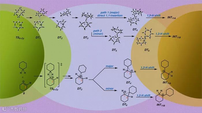Nelson教授及其研究生表示,虽然这种化学反应有效地将烷烃转化为一种化学上更有用的产品,但实验上无法解释反应如何发生以及为什么发生。所以他们和Houk教授等研究者联手探索其原因和机理。Houk教授及其合作者开发了一种通过分子动力学模拟来研究反应的全新方法,他们通过理论计算提供了反应势能面的信息,理解了烯基碳正离子稳定性的来源(迁移能垒高);通过动力学机制的模拟,证明了非经典碳正离子的存在以及其在反应过程中的“分叉”特性。分叉效应的存在解释了实验中观察到的同位素效应,同时也进一步拓展了我们对于有机化学动态过程复杂性的认识。