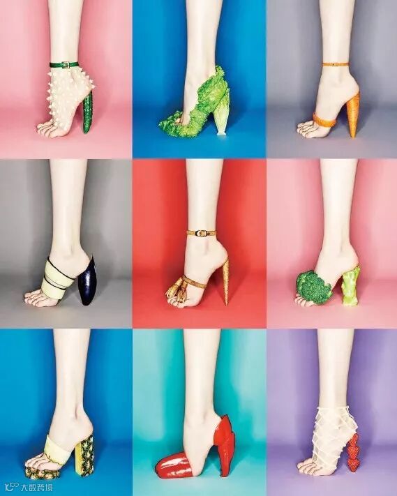 把所有水果蔬菜都穿在脚上