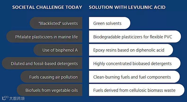 乙酰丙酸的用途和优势。图片来源:GF Biochemicals