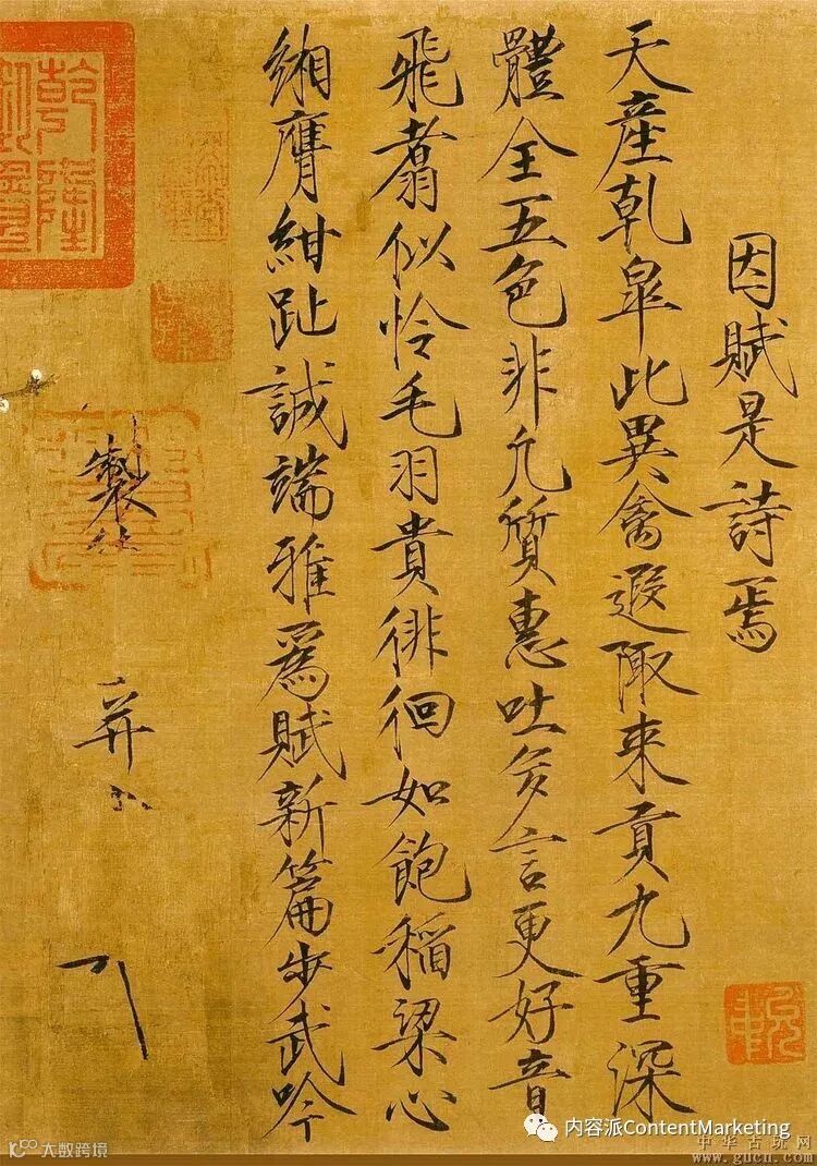 但后来的后来,我们都知道,宋徽宗身后也是骂名滚滚来。他是《岳飞传》里的那个昏庸皇上,也是《水浒传》里施耐庵处处影射的无道之君。其实在中国美学方面,宋徽宗树立了一座高峰,作为兼具书法和绘画才能的艺术家,宋徽宗把书法与绘画做了很重要的融汇,开创了诗、书、画、印为一体的文人书画新局面,并影响后世而绵延至今。