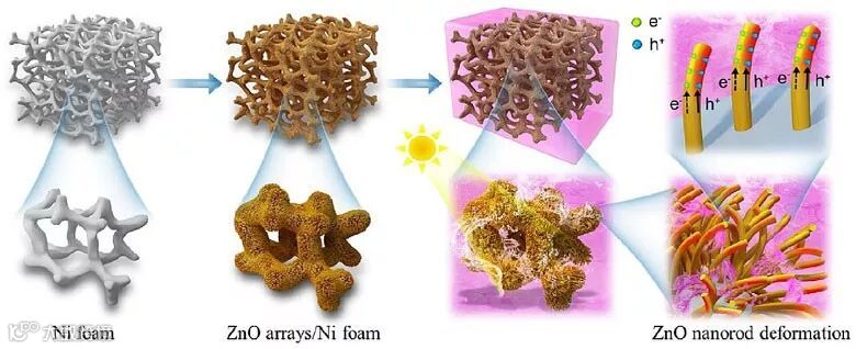 图4. ZnO纳米线阵列/Ni泡沫的压电场与光催化的协同效应。
