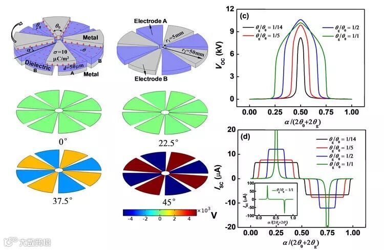 图5. 纳米摩擦发电机的仿真模型与性能模拟。